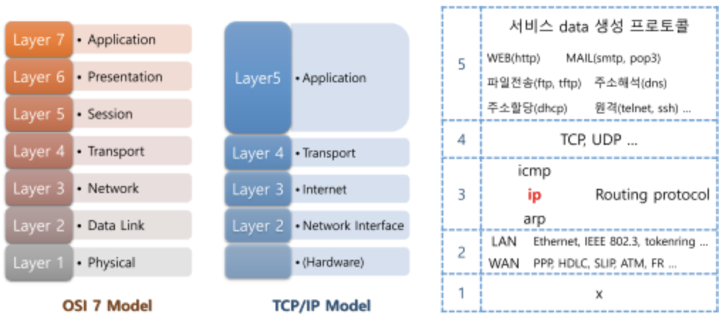 - OSI 7 Reference Model : 장비 개발, 문제 해결, 유지 보수, 학습 → 참조용