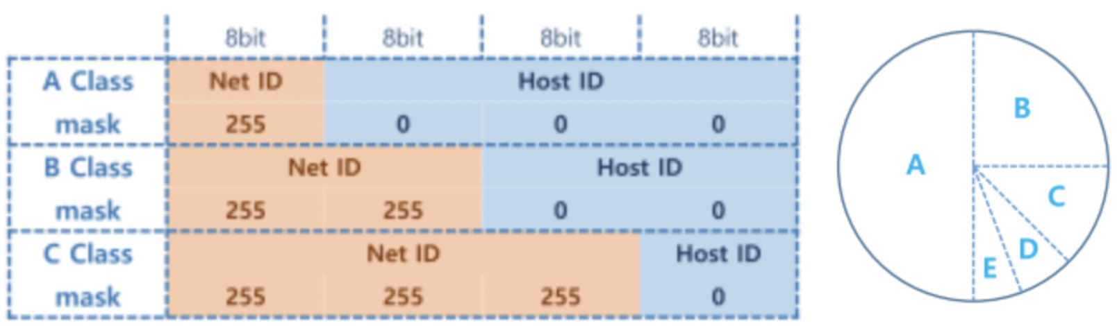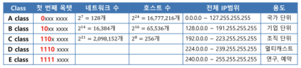 : IP 할당용 class → A, B, C