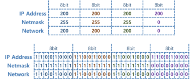 - Netmask를 가변적으로 이용하여 IP주소에서 Net ID와 Host ID를 구분함