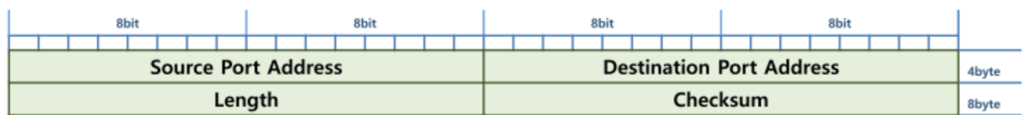: 출발지 port 주소 - dynamic port - Destination Port Address (16bit)