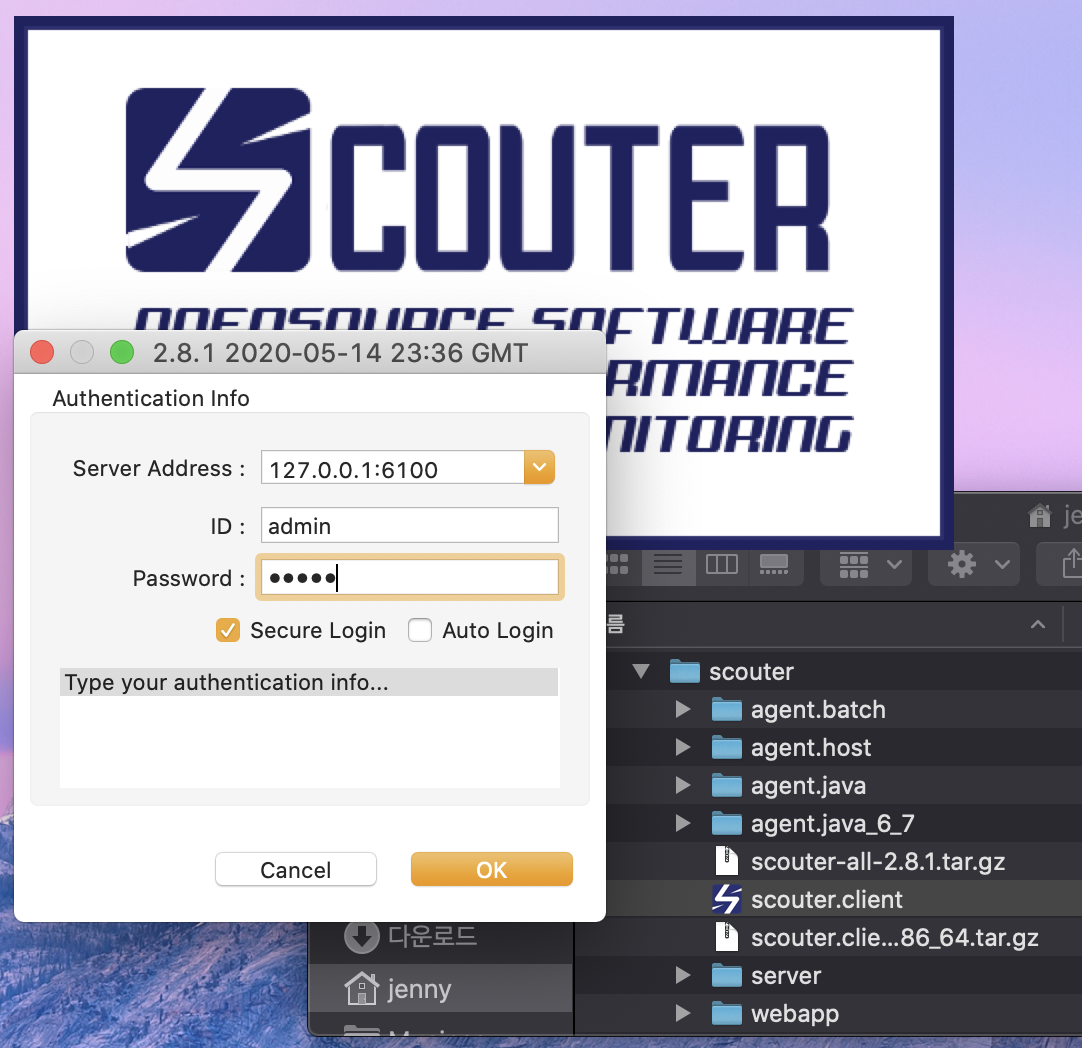 Scouter 홈페이지에 접속하여 적절한 위치에 scouter-all-[version].tar.gz 의 압축을 풀어준다.