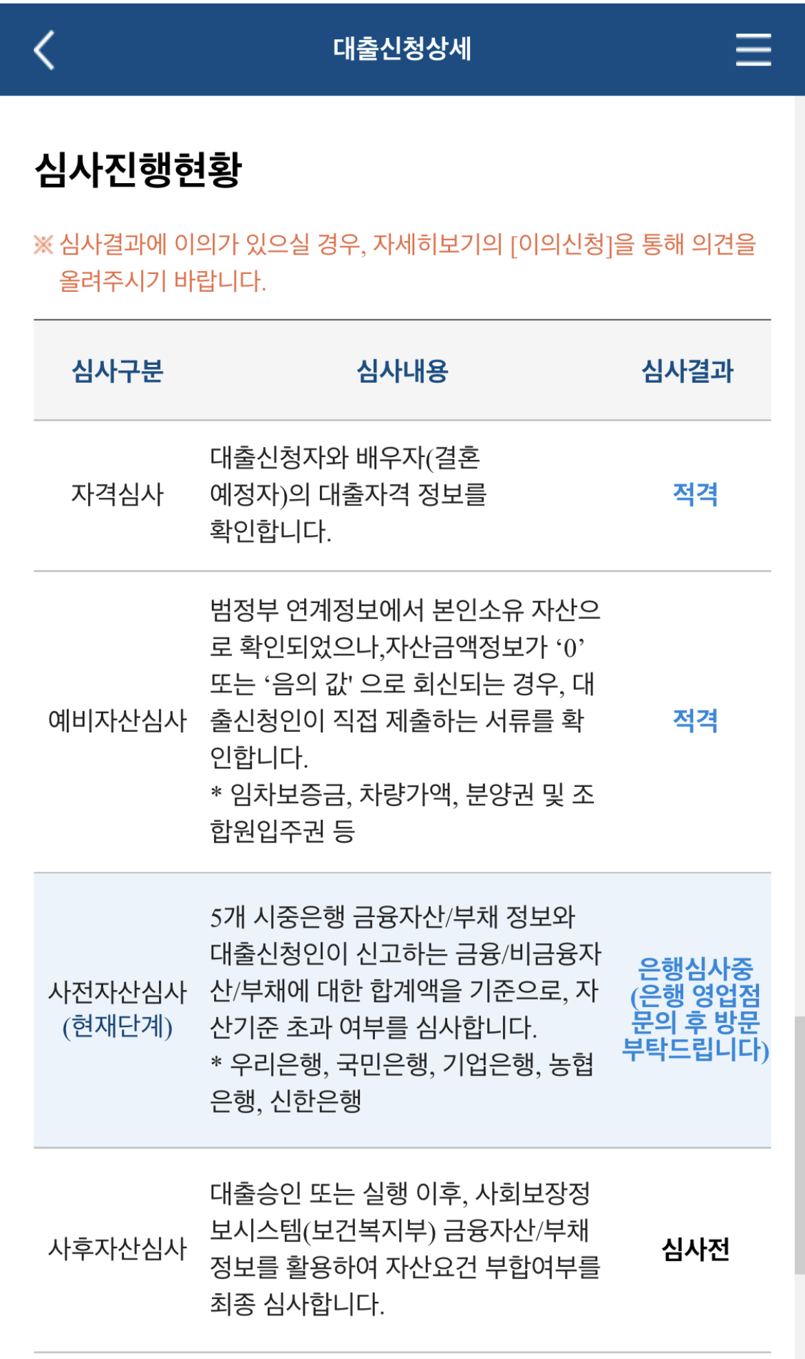 이의신청이 지나고 난 후 다행히 잘 해결되어 사후 자산심사로 넘어갔고, 원하는 은행에 찾아가서 대출 신청을 해야한다.