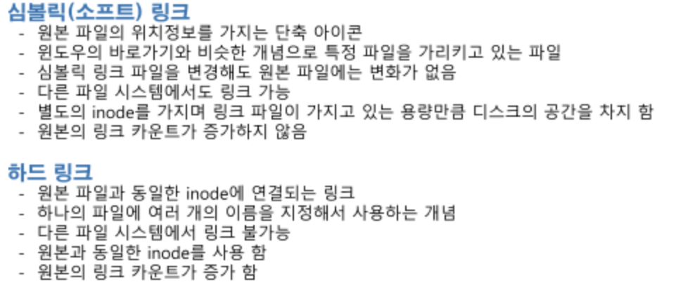 + 하드 링크 : 원본 파일의 inode를 공유해서 사용하기 때문에 참조하는 횟수가 증가하기 때문에 카운터는 증가함