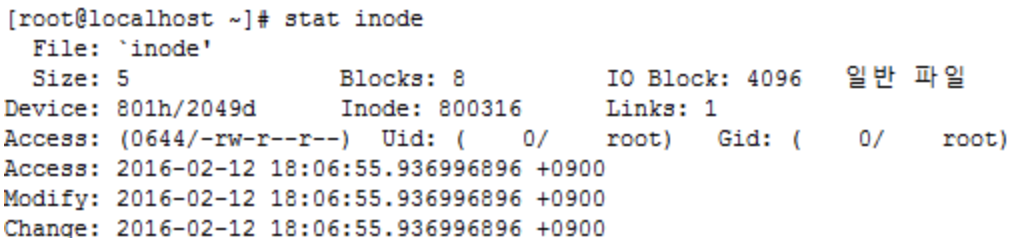 - stat [확인하고자 하는 파일이나 디렉터리] : I-node에 대한 모든 정보