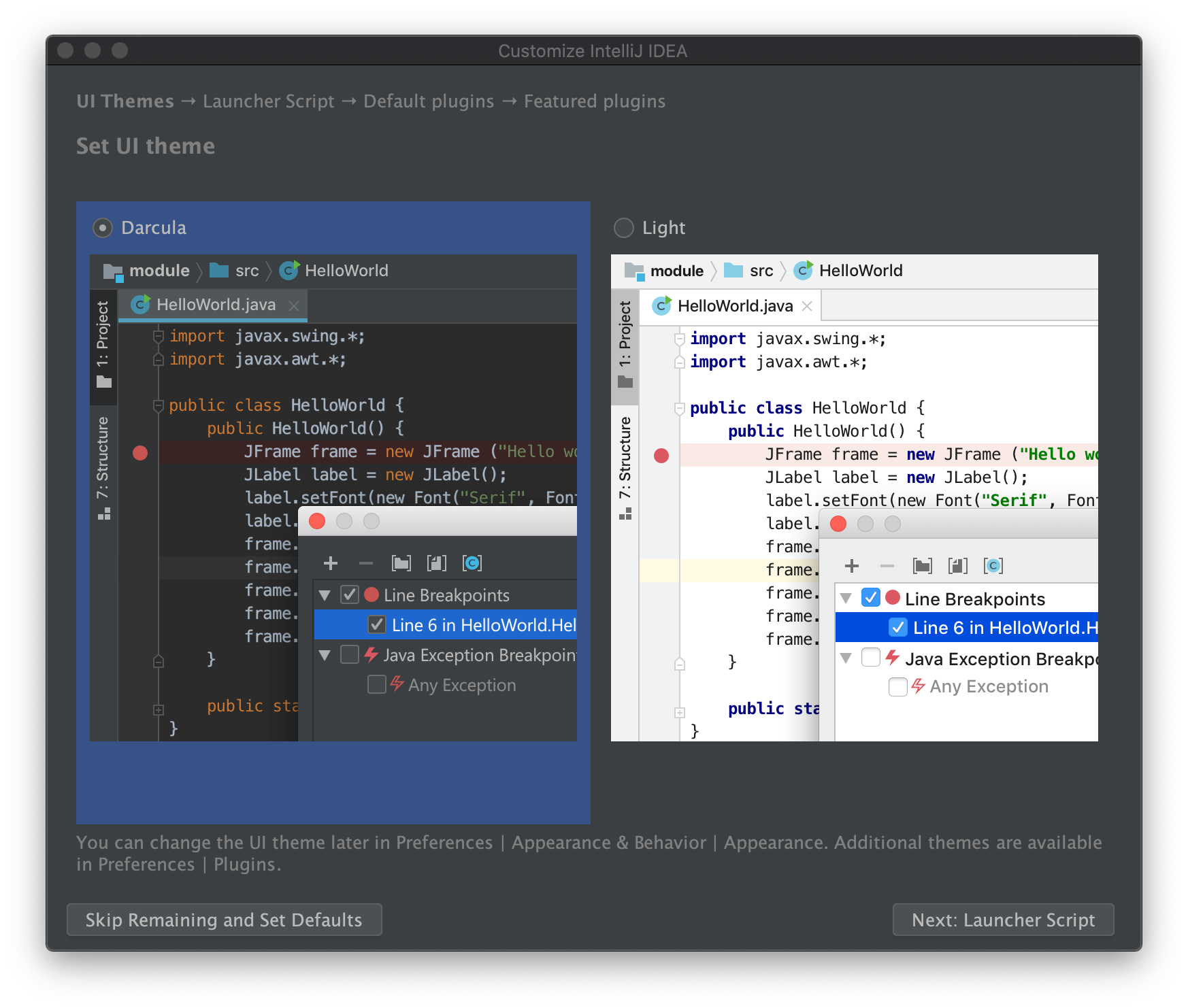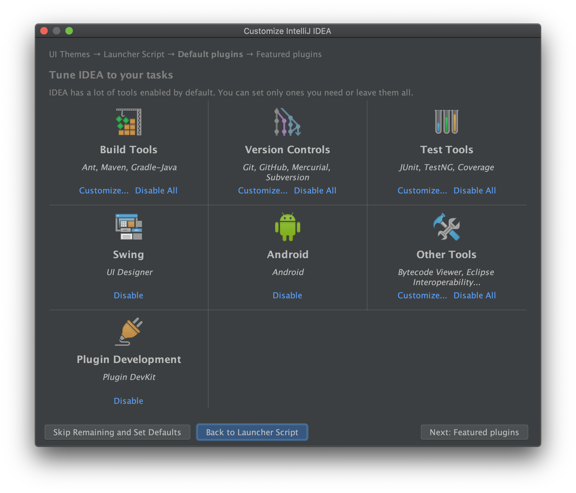 인텔리제이 설치 화면이 노출되고, 로딩 화면이 끝나면 인텔리제이의 기본 환경 설정을 하게 됩니다.