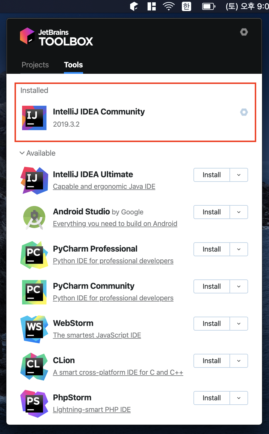 ToolBox를 통해 IntelliJ IDEA community 를 설치해봅니다.