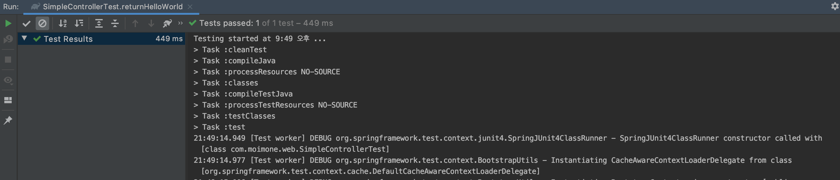 테스트 코드가 성공 결과로 확인을 하면, 서버를 구동해서 정상적으로 값이 출력되는지 확인을 해야합니다.