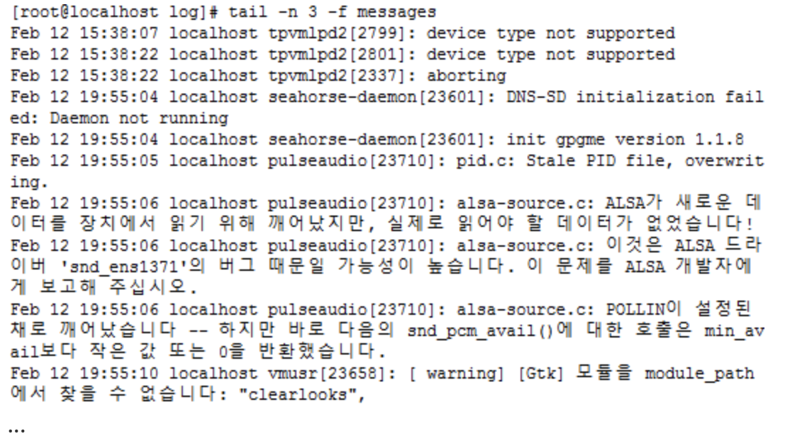 tail -f [파일명] : 실시간 추가되는 내용 출력 (종료 : ctrl+c)