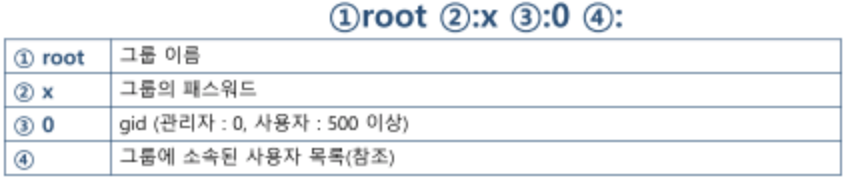 | /etc/group | 사용자 그룹의 기본 정보 |