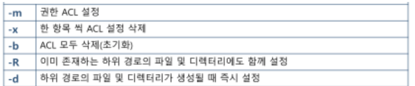 setfacl [option] [[소유권]:[확장할사용자]:[허가권]] [파일명]