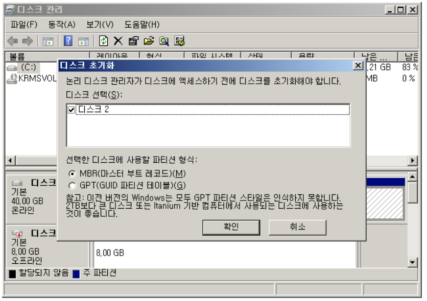 ✓ 디스크를 관리하는 초기상태 설정