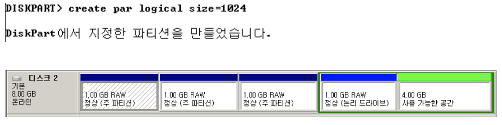 ✓ 디스크에 파티션 생성 및 삭제