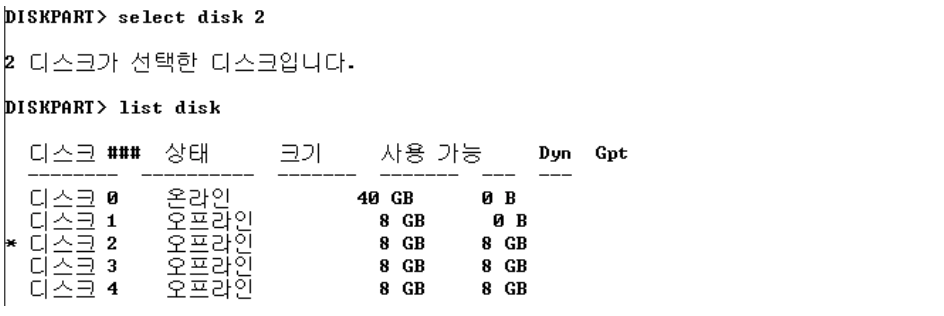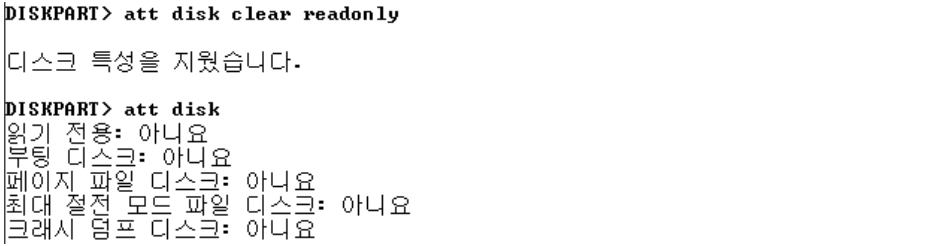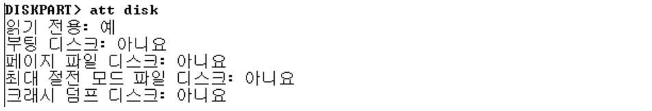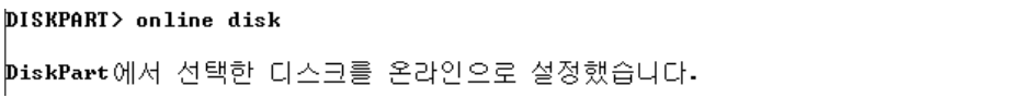 [CLI] diskpart → 디스크를 온라인으로 변경할 때는 읽기 전용 속성이 적용되므로 사용하기 전에 반드시 해제해야함