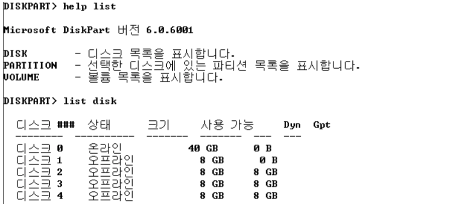 : 윈도우를 설치 할 때 디스크화면에서 'shift + F10'을 이용하여 diskpart로 접근할 수 잇음