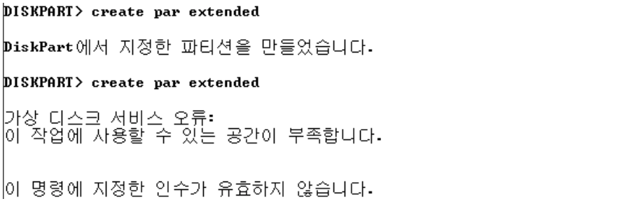 4 ) 확장 파티션 안에 주 파티션을 만들 수 있는가 ? 아니오