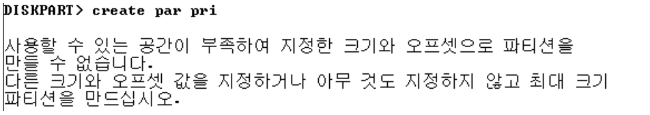 6 ) 파티션 사이의 빈 공간에 파티션을 생성할 수 있는가? 예, 대신에 사이즈는 넘어갈 수 없음