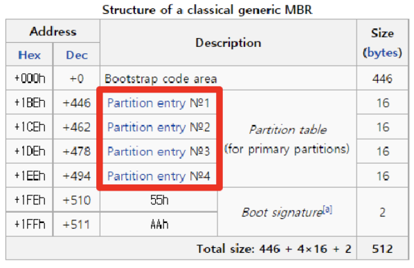 - 주 파티션에 부팅 정보가 저장됨 : Bootstrap code area