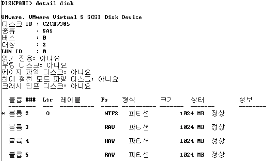 디스크의 세부설정 확인