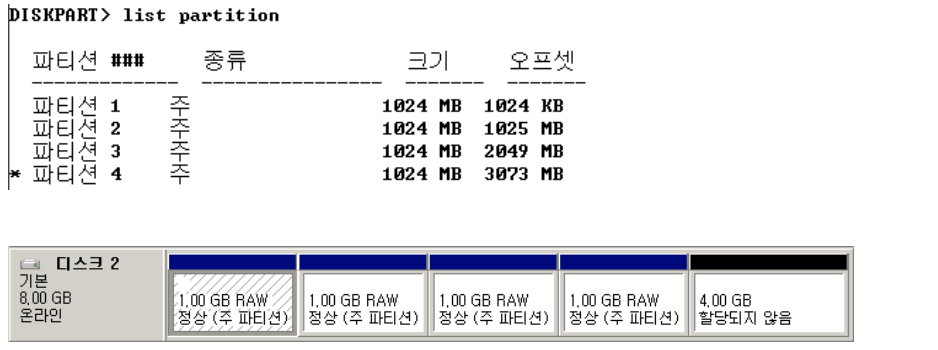 파티션은 순서대로 할당되므로, 번호는 순서가 다를 수 있음